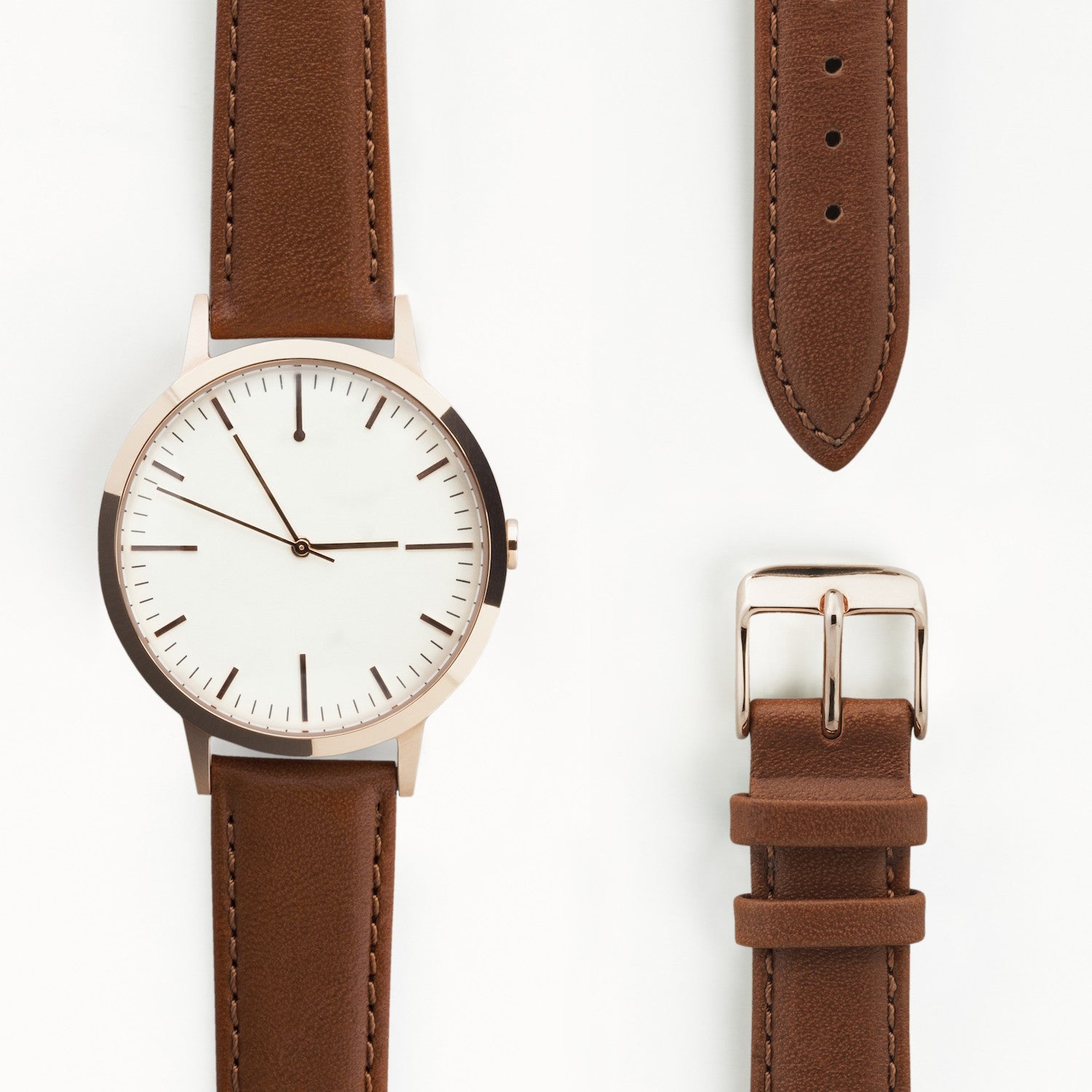 As seen in , the limited edition 40mm rose gold and tan men's watch (or women that prefer a larger watch dial) combines the classic detailing of vintage watches with a modern minimalist finish.
