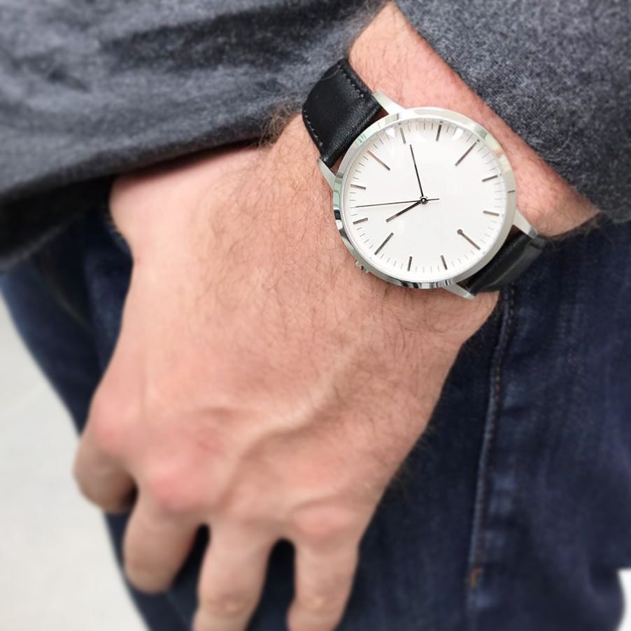 As seen in , the limited edition 40mm silver and black men's watch (or women that prefer a larger watch dial) combines the classic detailing of vintage watches with a modern minimalist finish.